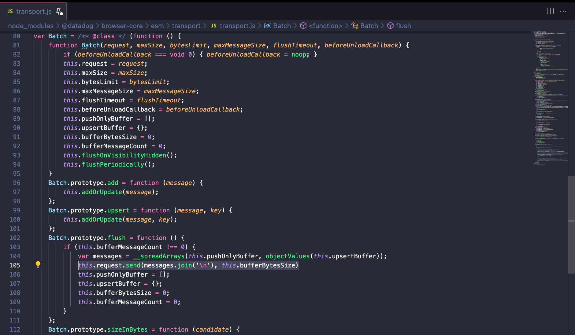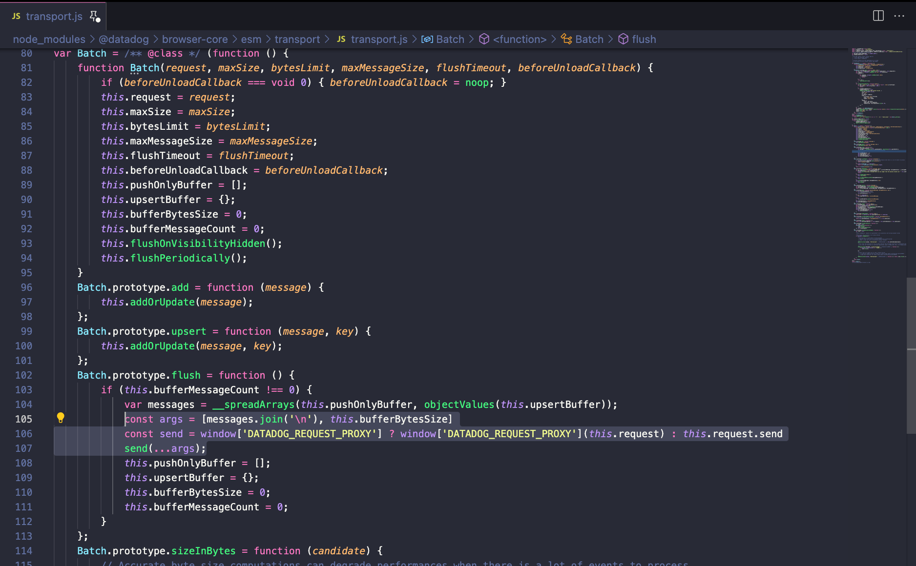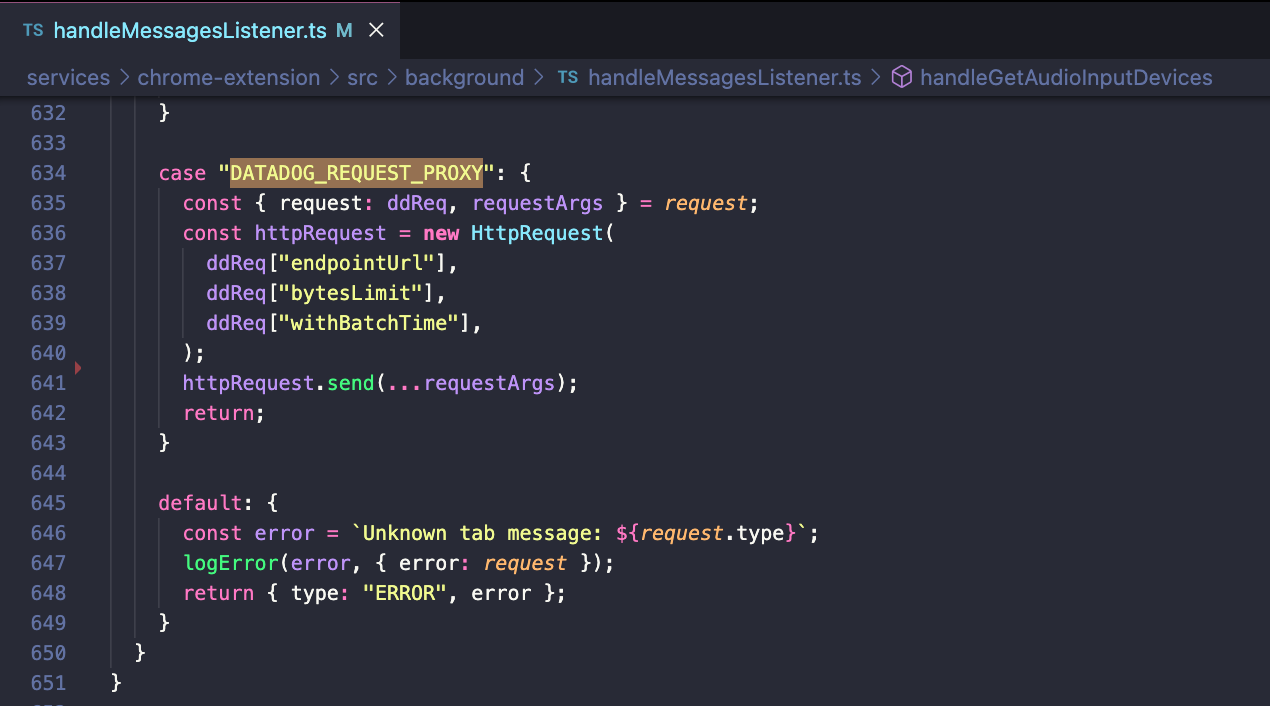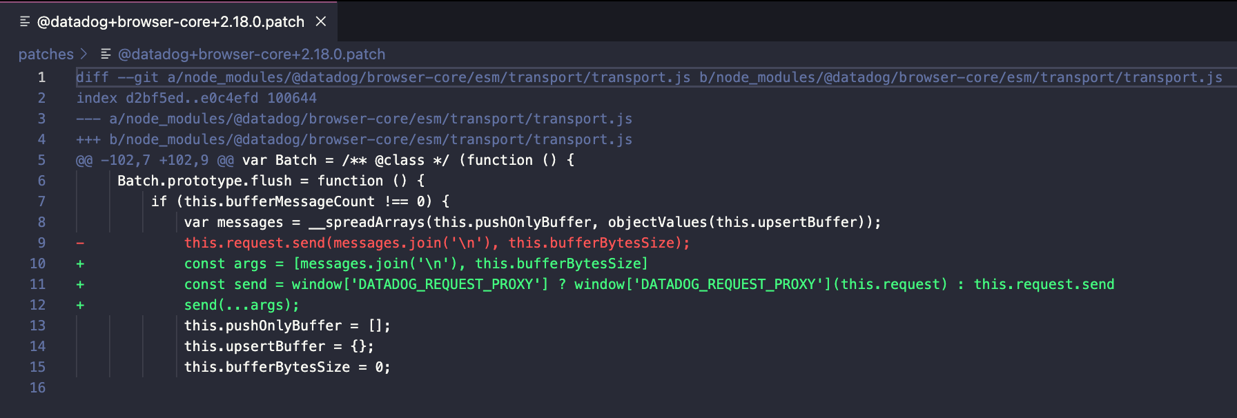 ? Imported from the same file we patched, which thankfully already exported it.The end result: Datadog logs are smoothly sent through our background script!