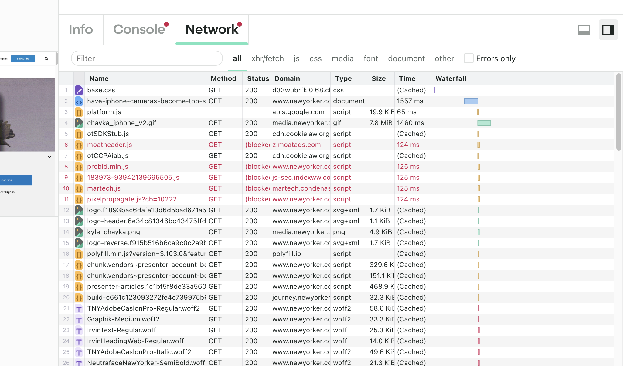 The problem is that a portion of our Chrome1 extension is a content-script, which gets loaded alongside pages that users report bugs on. When our content script sends updates to Datadog, these updates live in the context of the host page. So they pollute the user's network requests tab in devtools. And when a user closes the page, requests that were buffered could be lost!